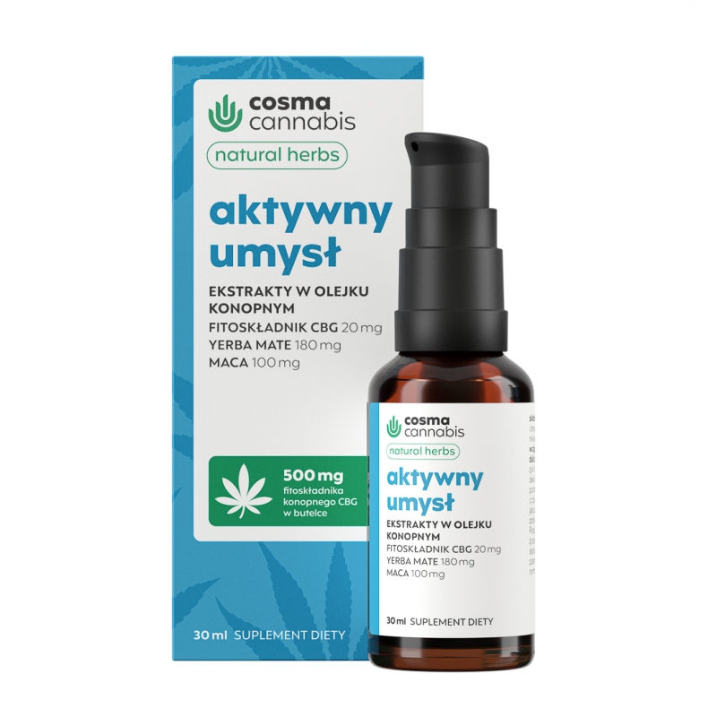 Składniki: Zielony olej z nasion konopi siewnej zawierający kwasy omega-3 i omega-6, ekstrakt z ziela yerba mate, ekstrakt z korzenia macy, fitoskładnik konopny CBG, ekstrakt z ziela rozmarynu.
