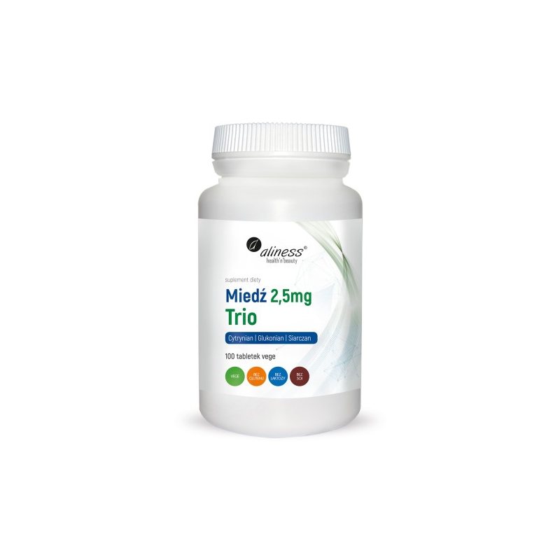 W produkcie znajduje się: cytrynian, glukonian oraz siarczan miedzi – formy te charakteryzujące się wysoką przyswajalnością.